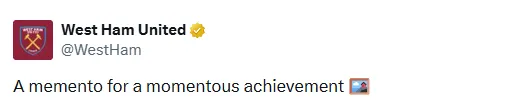 虎扑01月27日讯 西汉姆联官方X更新,祝贺后卫迪乌夫获得非洲杯冠军。